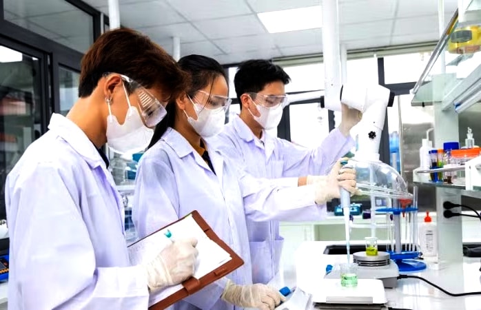 Sinh viên Trường Đại học Phenikaa thực hành nghiên cứu tại phòng thí nghiệm. Ảnh: Thơm Vũ