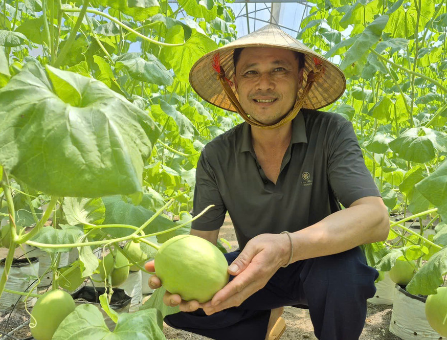 Năm 2023, khi thấy người thân trồng dưa vàng kim hoàng hậu mang lại thu nhập cao, ông quyết định học hỏi. Được người nhà tận tình hướng dẫn kỹ thuật, ông mạnh dạn đầu tư 1.000m2 nhà màng để khởi nghiệp với loại cây trồng mới này.