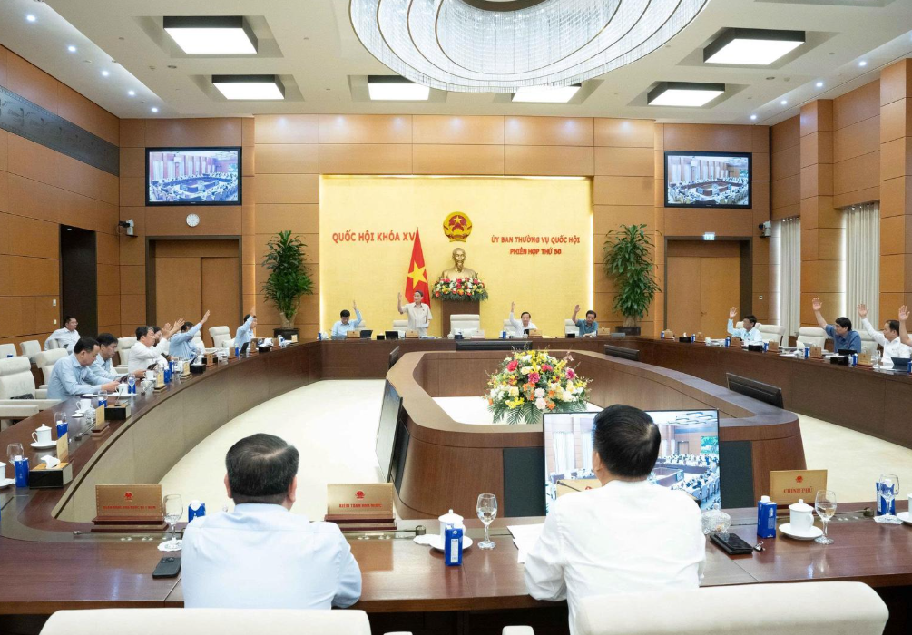 Ủy ban Thường vụ Quốc hội thông qua Nghị quyết về mức thuế bảo vệ môi trường đối với xăng, dầu, mỡ nhờn trong năm 2026. Ảnh: P.Thắng