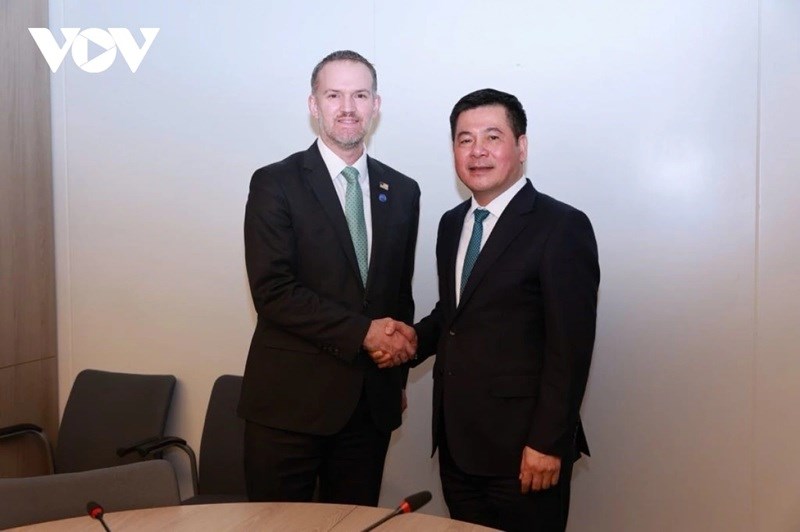 | Bộ trưởng Bộ Công Thương Nguyễn Hồng Diên và Trưởng Đại diện Thương mại Hoa Kỳ Jamieson Greer. Ảnh: vov.vn |
