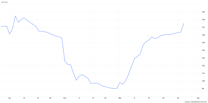 Rủi ro liên quan đến thời tiết tại Australia cũng nổi lên như một yếu tố riêng biệt. Vào cuối tháng 3, nguy cơ từ siêu bão Narelle và việc tạm thời đóng cửa một số cảng tại khu vực Pilbara đã khiến giá tăng trong ngắn hạn.