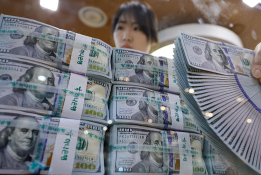 Các xấp tiền USD tại một ngân hàng tại Hàn Quốc. Ảnh: News1