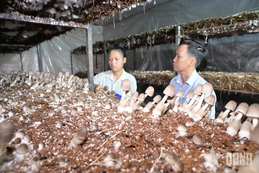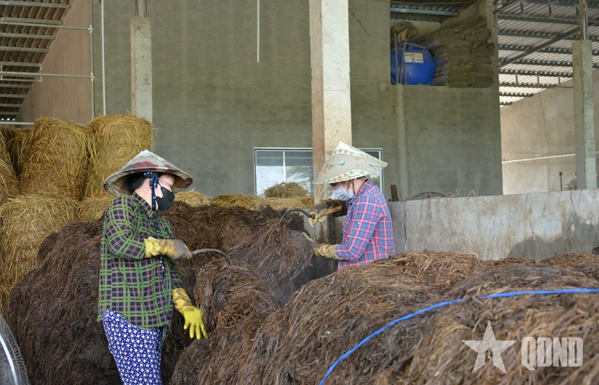Một số hình ảnh được phóng viên Báo Quân đội nhân dân ghi tại cơ sở sản xuất nấm rơm sạch của chị Lê Thị Hồ Linh: