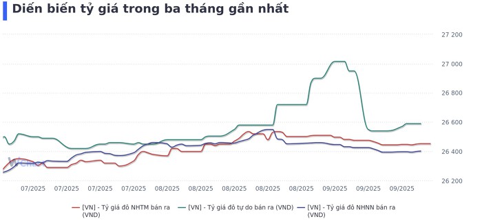 Đối với tỷ giá, dẫn số liệu từ NHNN tại phiên 25/9, nhà điều hành công bố tỷ giá trung tâm tại 25.194 đồng và tăng 852 đồng so với đầu năm. Luỹ kế từ đầu năm đến nay, tỷ giá trung tâm tăng 3,5%.