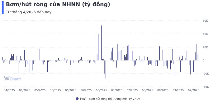 Trong tuần từ 22/9 - 26/9, Ngân hàng Nhà nước (NHNN) đã cho các thành viên vay tổng cộng hơn 79.800 tỷ đồng với lãi suất 4% trên kênh cho vay cầm cố giấy tờ có giá. Cùng thời gian trên, khối lượng đáo hạn lên tới gần 50.500 tỷ đồng.