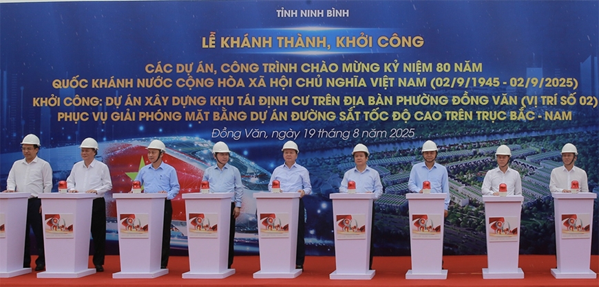 | Tỉnh Ninh Bình khởi công Dự án Xây dựng khu tái định cư trên địa bàn phường Đồng Văn phục vụ Dự án đường sắt tốc độ cao trên trục Bắc-Nam. Ảnh: MINH KHÔI |
