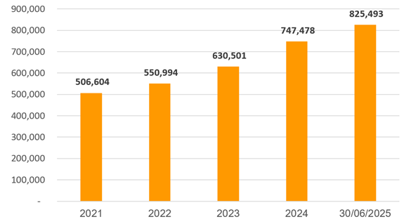Tính đến 30-6-2025, tổng tài sản của SHB gần 826 nghìn tỷ đồng, trong đó, dư nợ cho vay khách hàng vượt 594,5 nghìn tỷ đồng, tăng 14,4% so với đầu năm. Lũy kế 6 tháng, SHB ghi nhận lợi nhuận trước thuế lũy kế 8.946 tỷ đồng, tăng 30% so với cùng kỳ năm 2024, tương đương 62% kế hoạch năm 2025.