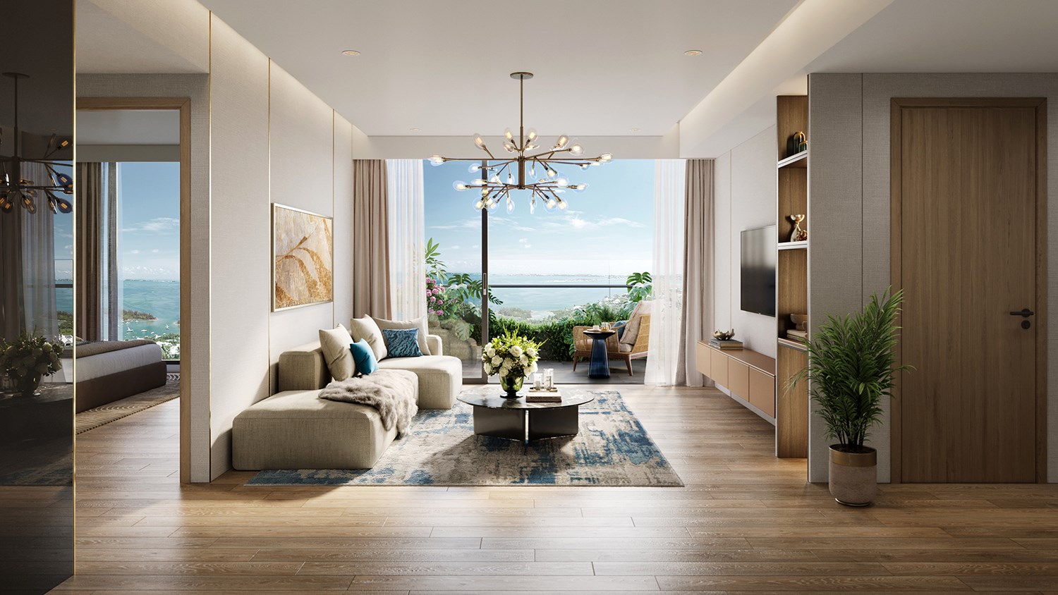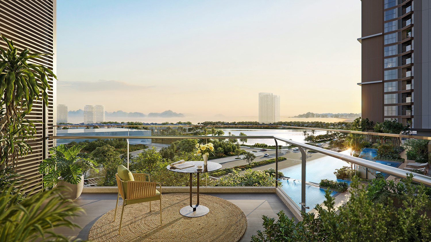 Tất cả các căn hộ đều sở hữu ban công chéo đón gió, cửa kính tràn viền với tầm nhìn hướng vịnh Hạ Long và hồ cảnh quan rộng 13,5ha. Thiết kế mang ngôn ngữ “Modern Luxury” tối giản và tinh tế, giúp tối ưu hóa công năng sử dụng và trải nghiệm lưu trú, phù hợp cho các mô hình cho thuê linh hoạt từ ngắn đến dài hạn.