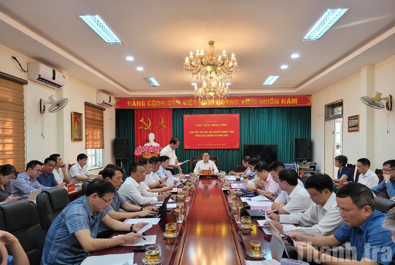 Chủ tịch UBND tỉnh Sơn La Nguyễn Đình Việt trong buổi làm việc với Hiệp hội Doanh nghiệp tỉnh Sơn La. Ảnh: ND