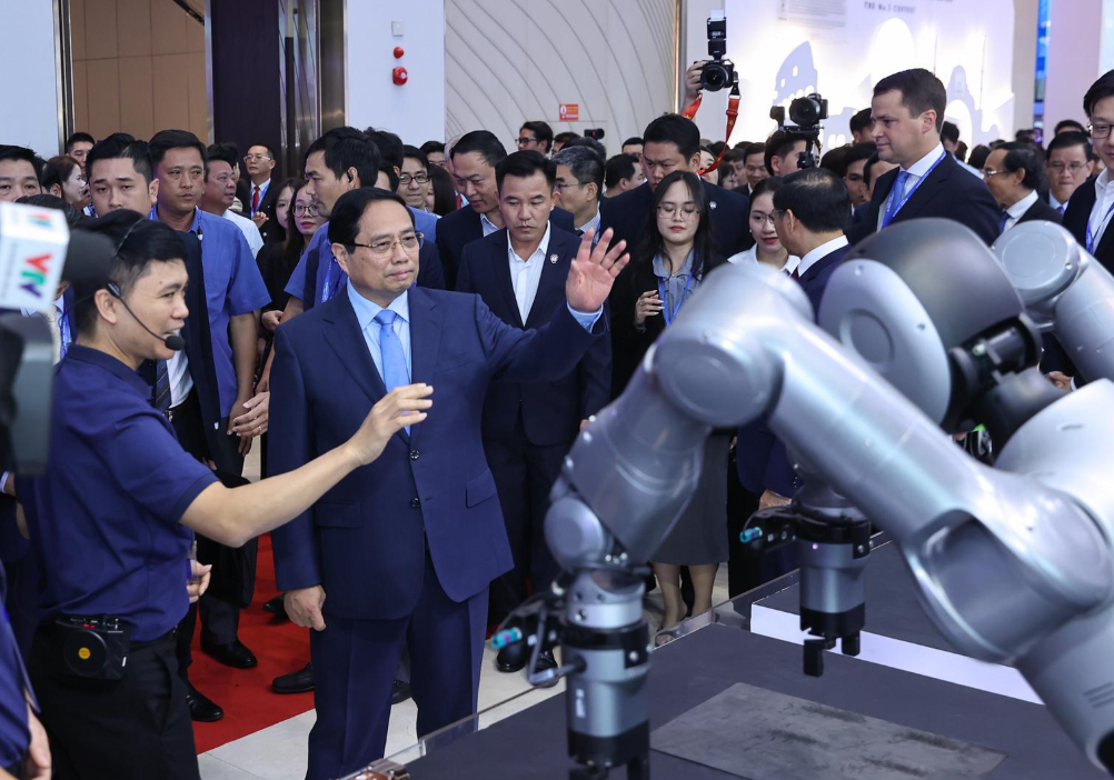 Thủ tướng Phạm Minh Chính tham quan triển lãm trong khuôn khổ Diễn đàn Kinh tế mùa Thu hồi cuối tháng 11/2025. Ảnh: Đoàn Bắc