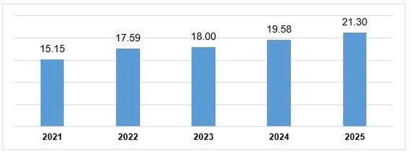 Vốn đầu tư trực tiếp nước ngoài thực hiện mười tháng các năm 2021-2025 (Tỷ USD. Theo GSO)