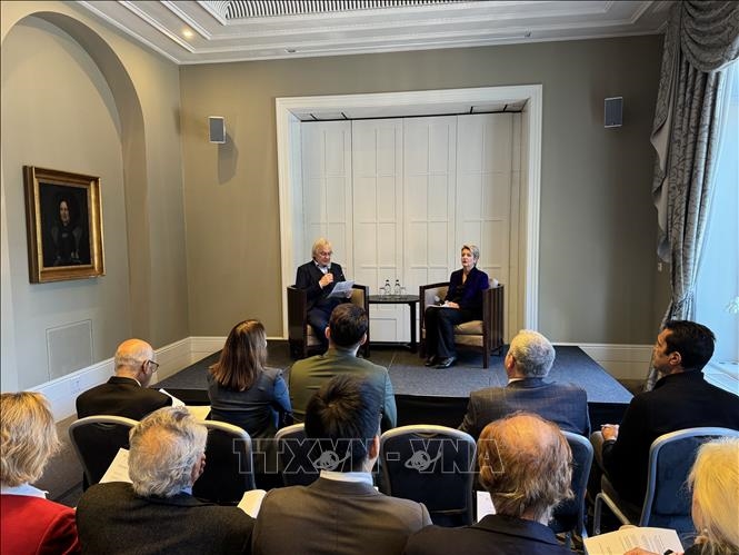 Tổng thống Thụy Sĩ Karin Keller-Sutter (ngồi bên phải) tham dự sự kiện của APES. Ảnh:TTXVN |