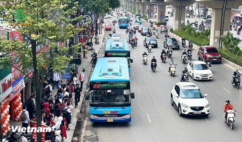 | Giá xăng dầu tăng cao, nhiều người dân đã tăng cường sử dụng phương tiện công cộng; Ảnh minh họa: PV/Vietnam+ |