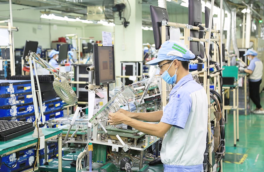 Sản xuất linh kiện điện tử tại Công ty TNHH Katolec Việt Nam, Khu công nghiệp Quang Minh (Hà Nội). Ảnh: Nguyễn Quang