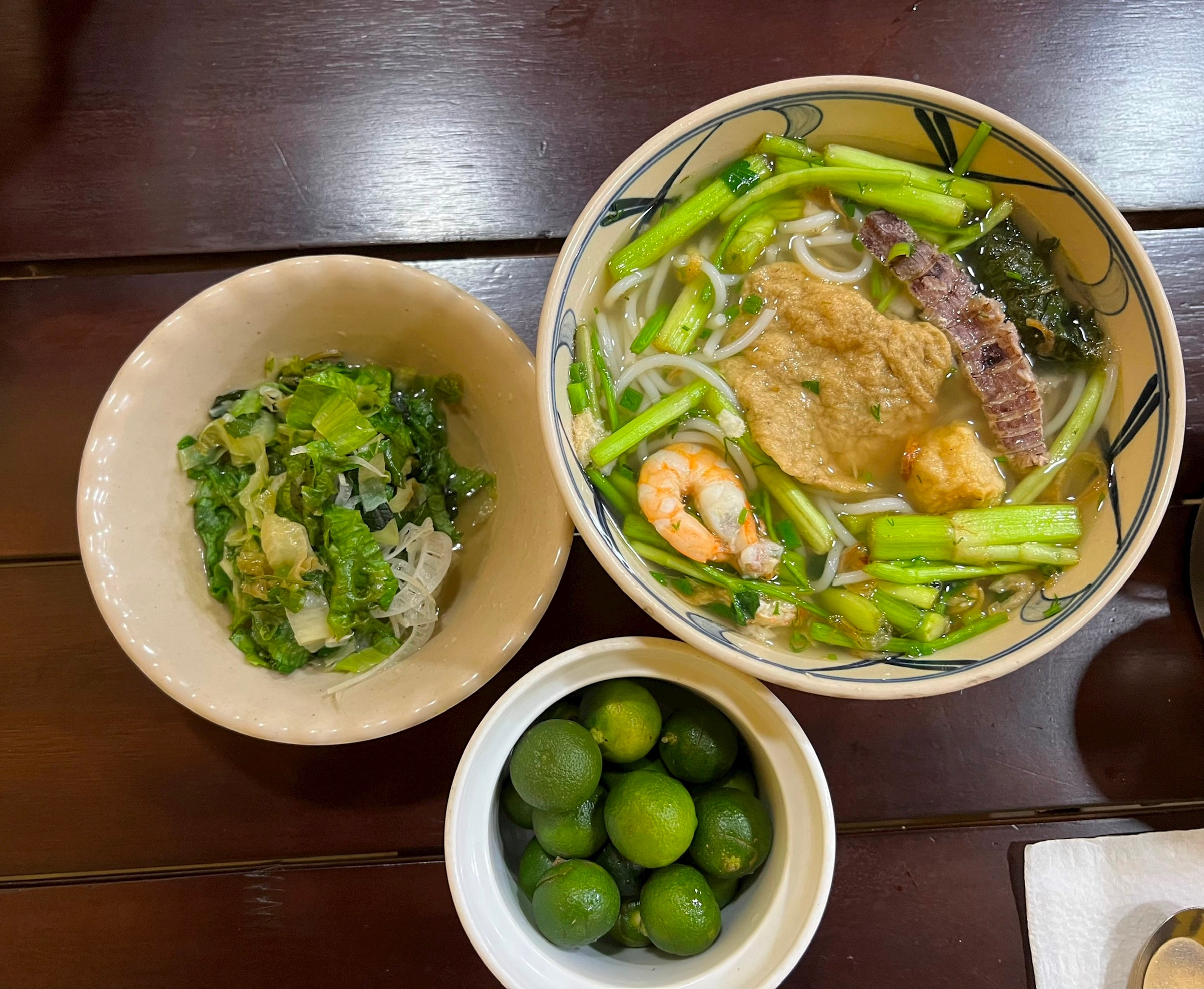 Một cửa hàng kinh doanh mặt hàng ăn (bún, bánh đa hải sản) trên phố Nguyên Hồng vẫn giữ nguyên giá bán dao động từ 60.000 - 65.000 đồng/bát. Ảnh: Ánh Ngọc