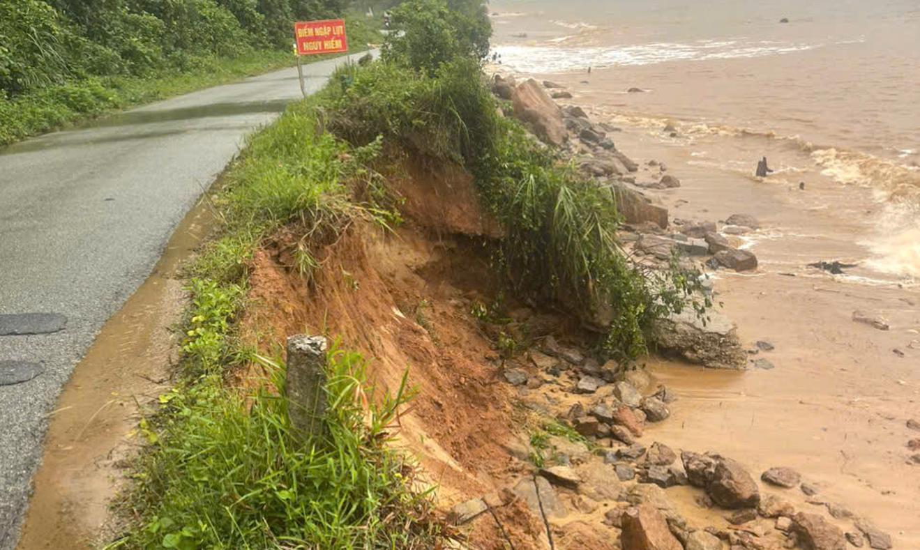 Mưa lớn, triều cường và nước dâng đã khiến nhiều đoạn đường ven biển, cửa biển bị sạt lở nghiêm trọng. Ảnh: PCTT Huế