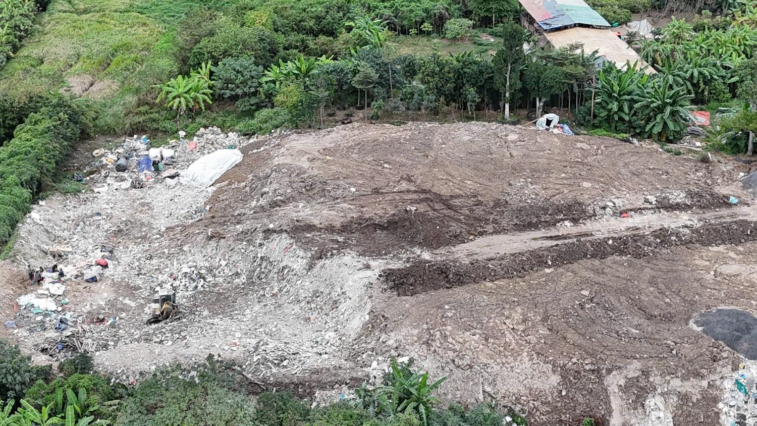 Khu vực bị đổ trộm chất thải xây dựng ở xã Bát Tràng. Ảnh: Thanh Hà