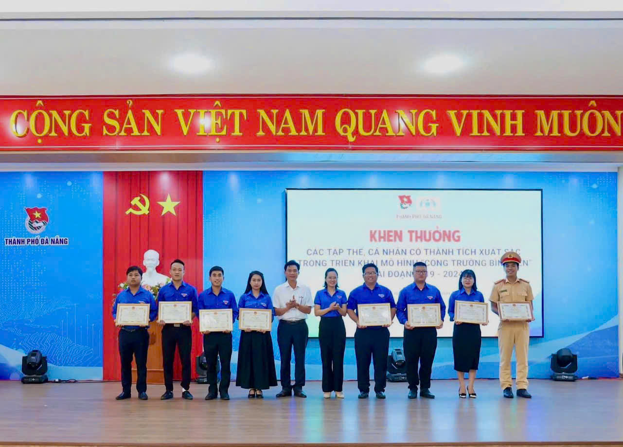 Cô Huỳnh Thị Hoàng nhận giấy khen Giáo viên trẻ tiêu biểu cấp thành phố Đà Nẵng. Ảnh: TN