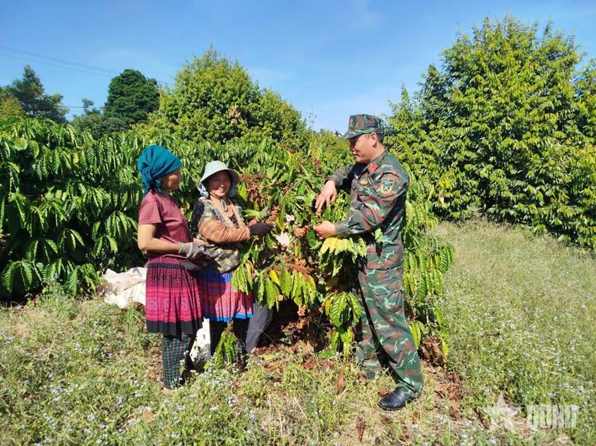 Từ yêu cầu nâng cao hiệu quả sử dụng đất, Đại úy QNCN Phạm Hùng Thắng động viên các hộ trồng xen cây sầu riêng, hồ tiêu, kết hợp hướng dẫn kỹ thuật, áp dụng canh tác khoa học, tiết kiệm nước, từng bước nâng cao thu nhập, ổn định đời sống người lao động.