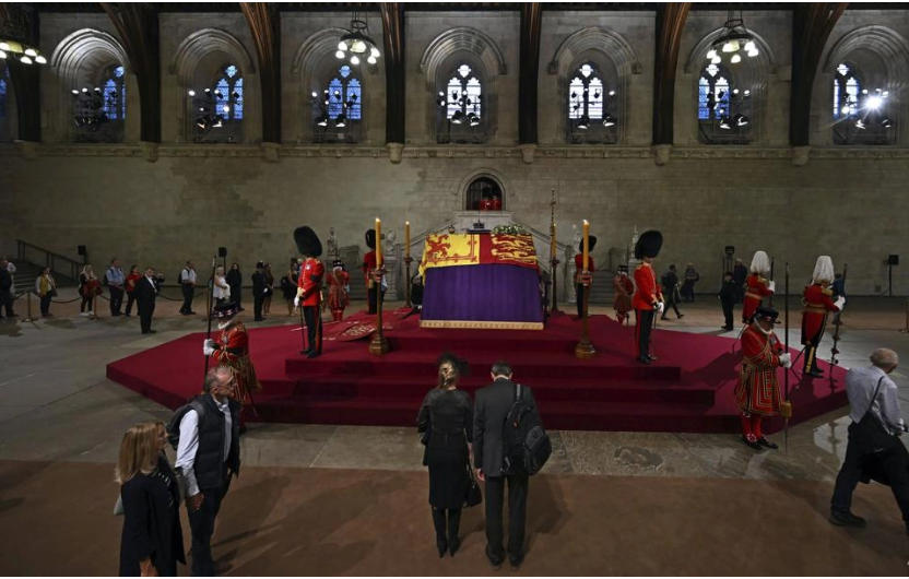 Người dân đi qua linh cữu của nữ hoàng được đặt tại Đại sảnh Westminster. Ảnh: AP.