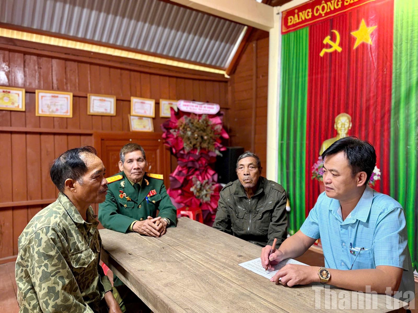 Cán bộ xã xã M’Đrắk, tỉnh Đắk Lắk (bìa phải) lắng nghe ý kiến từ già làng Y Sức Byă về tình hình phát triển kinh tế – xã hội và giữ gìn an ninh trật tự tại buôn M'lốc A. Ảnh: NG