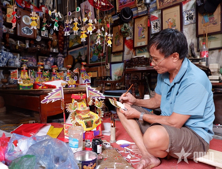 Trong căn nhà nhỏ ở làng Bá Dương Nội (xã Ô Diên, TP Hà Nội) của ông Nguyễn Văn Tý, những món đồ chơi Trung thu xưa như ông tiến sĩ giấy, ông đánh gậy, đèn kéo quân, diều sáo... được bài trí khắp nơi. Ở tuổi 67, ông Tý vẫn miệt mài mỗi mùa Trung thu với tre, nứa, giấy dó, hồ dán để giữ gìn nghề làm đồ chơi Trung thu truyền thống.