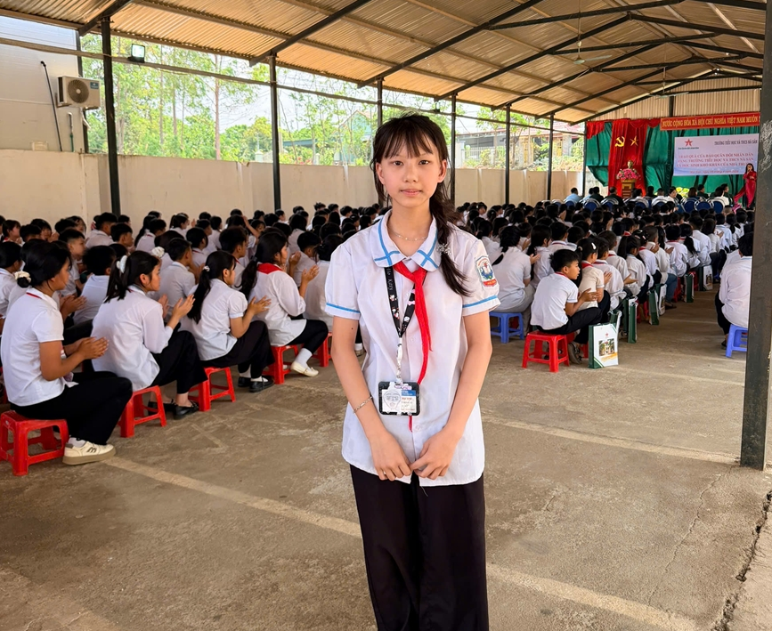 Em Trần Minh Vy, học sinh Lớp 8A2, Trường Tiểu học và THCS Nà Sản, xã Mai Sơn, tỉnh Sơn La.
