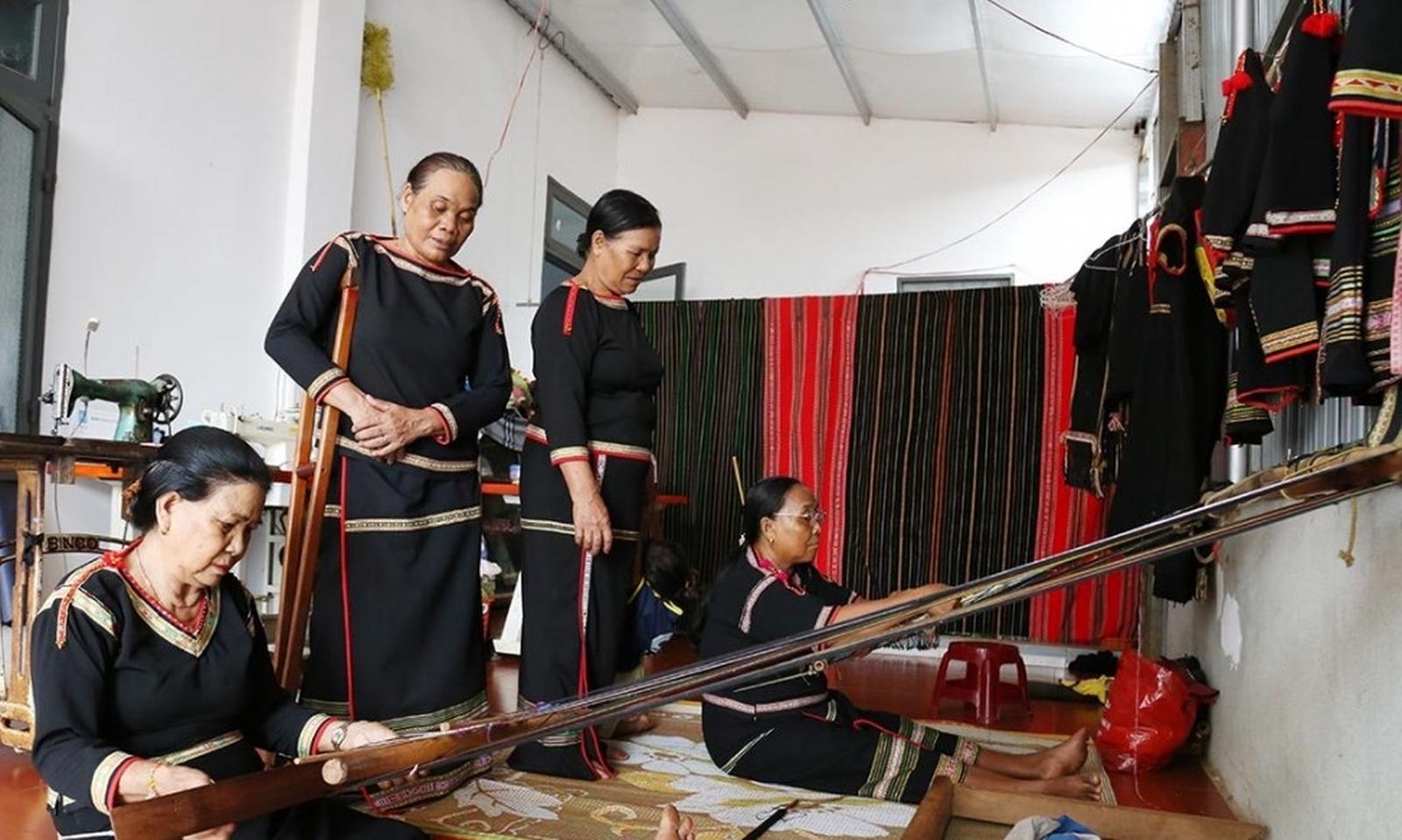 Hoạt động dệt thổ cẩm trở thành mô hình giúp nhiều phụ nữ DTTS ở buôn Kla (xã Ea Na, Đắk Lắk) có việc làm ổn định, từng bước cải thiện đời sống kinh tế. Ảnh: VA