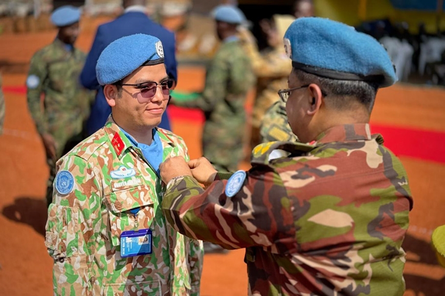 Thiếu tá Nguyễn Anh Tuấn được trao Huy chương Vì sự nghiệp gìn giữ hòa bình Liên hợp quốc ngày 7-1-2026. Ảnh: ĐỨC DŨNG |