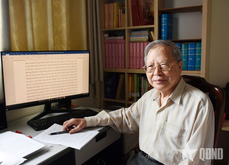 GS, TS Nguyễn Trọng Chuẩn ở tuổi 86 vẫn đam mê tìm hiểu thông tin, làm việc hằng ngày. |