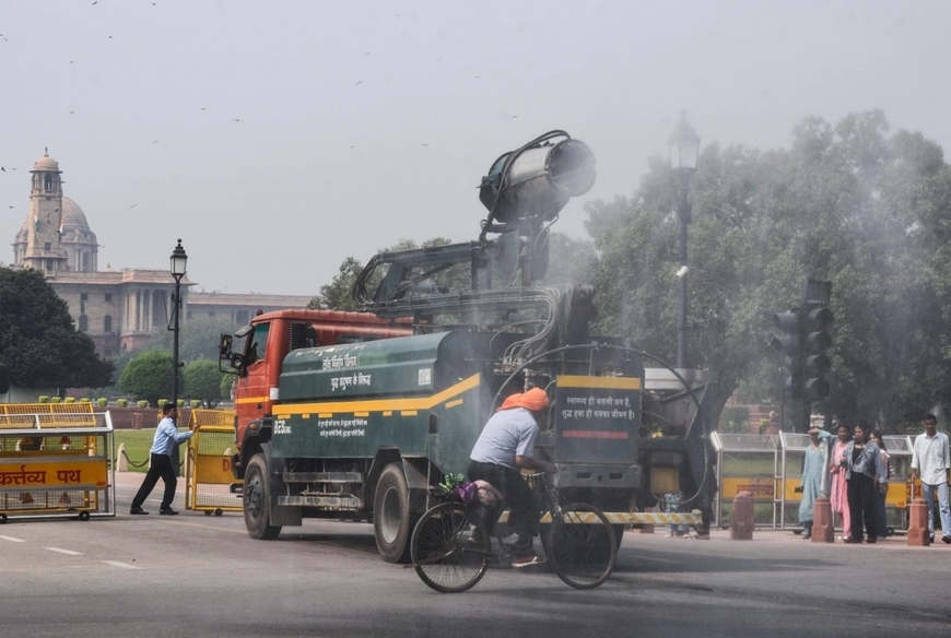| Các xe phun nước để giảm ô nhiễm không khí được vận hành trên một số đường phố New Delhi ngày 19-10. Ảnh: ANI |