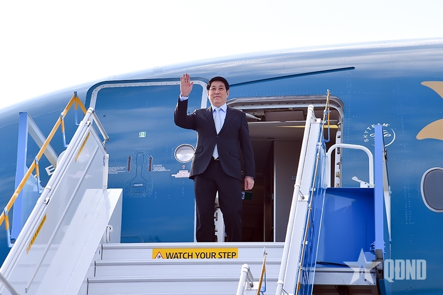 | Chủ tịch nước Lương Cường đến thành phố Busan, Hàn Quốc. |