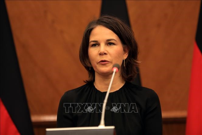 | Bà Annalena Baerbock khi giữ chức Ngoại trưởng Đức, phát biểu tại cuộc họp báo ở Amman, Jordan, ngày 11-2-2022. Ảnh tư liệu |