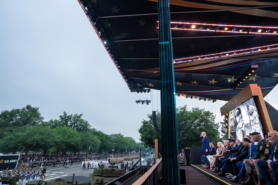 Ngày 14/6, Tổng thống Hoa Kỳ Donald Trump đã chủ trì cuộc duyệt binh hoành tráng nhất tại thủ đô Washington DC trong nhiều thập kỷ. Lễ duyệt binh có sự tham gia của trực thăng, máy bay quân sự, 128 xe tăng và hơn 6.000 binh sĩ diễu qua đại lộ Constitution.