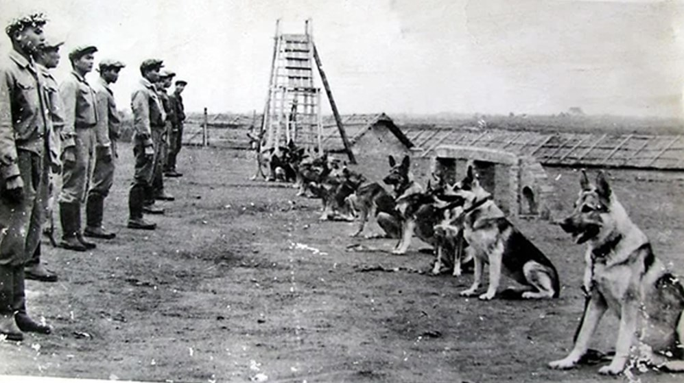 Lớp huấn luyện chó đầu tiên của lực lượng Công an nhân dân vũ trang ngày 15.12.1959. Ảnh: TƯ LIỆU