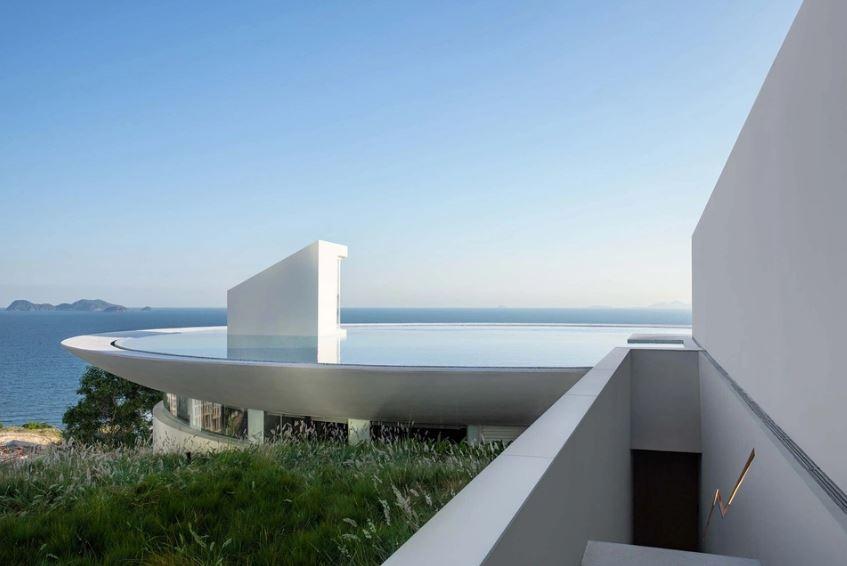 Thư viện trong góc nhìn từ phía biển, với phần mái là một bể bơi hình tròn. Cả tòa nhà là một khối trụ tròn nổi bật với hành lang trắng chạy thẳng dài đến cửa chính. Các bề mặt kính trong suốt bao quanh tòa nhà mang đến cho du khách cảm giác bay bổng, kết hợp giữa nội thất ấn tượng với sự tương phản ánh sáng làm tăng thêm nét thơ mộng cho tòa nhà.