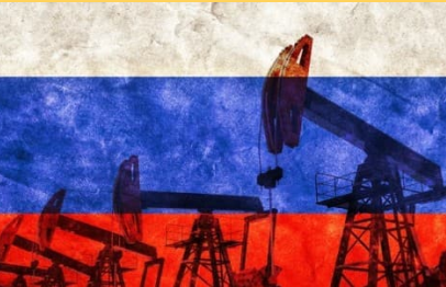 Hình minh họa dàn khoan dầu trên nền cờ Nga. Ảnh: Oil Price