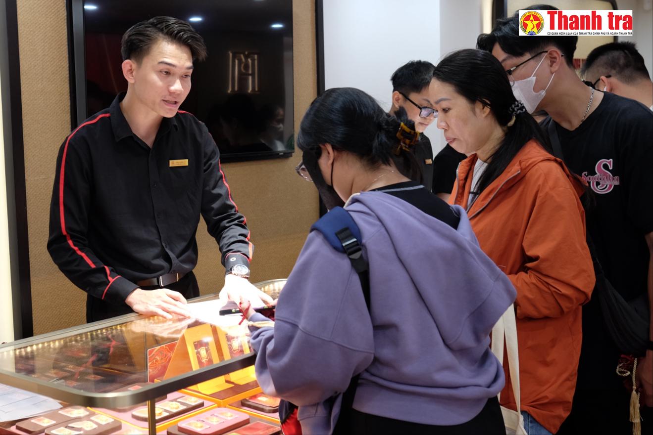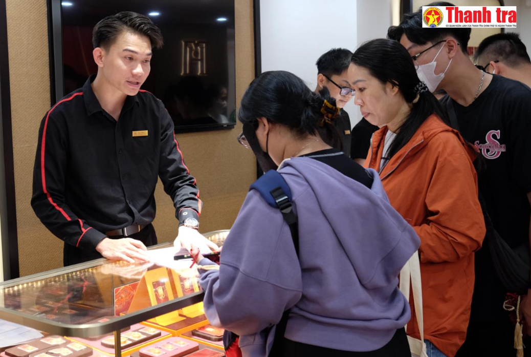 Không khí mua sắm vàng tại Bảo Tín Mạnh Hải sôi động trước ngày vía Thần Tài. Ảnh: Hải Ngọc