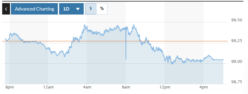 Biểu đồ biến động Chỉ số DXY trong 24 giờ qua. Ảnh: Marketwatch |