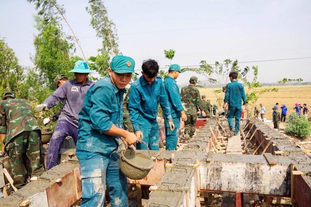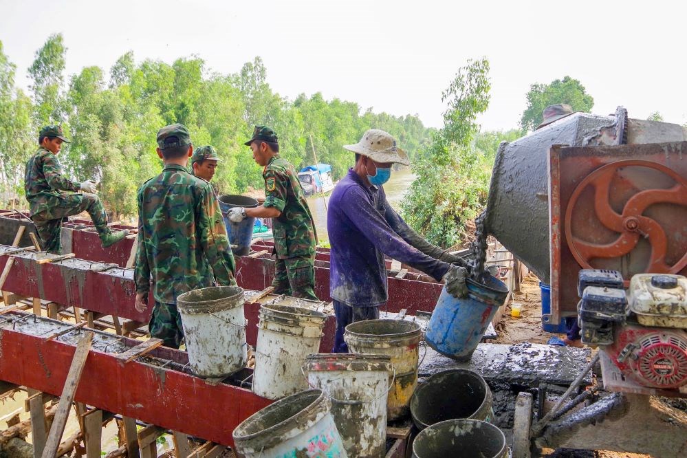 Trung đoàn 1, Sư đoàn 330, Quân khu 9 vừa góp 100 ngày công giúp phường Núi Voi, thị xã Tịnh Biên, tỉnh An Giang xây dựng cầu Cần Thảo 2.