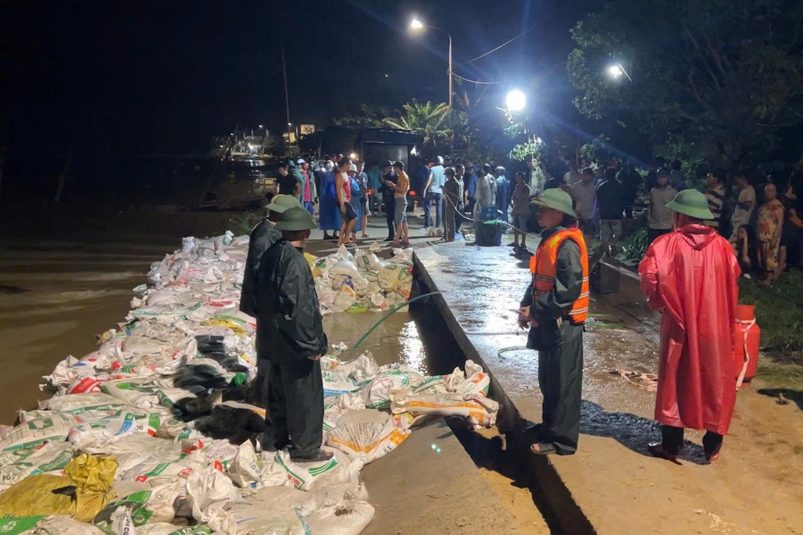 Trong tối ngày 29/10, gần 100 cán bộ, chiến sĩ Sư đoàn 315 đã được huy động để cùng bà con Nhân dân chạy đua với thời gian, gia cố bờ kè khu vực biển An Lương thuộc xã Duy Nghĩa, thành phố Đà Nẵng.