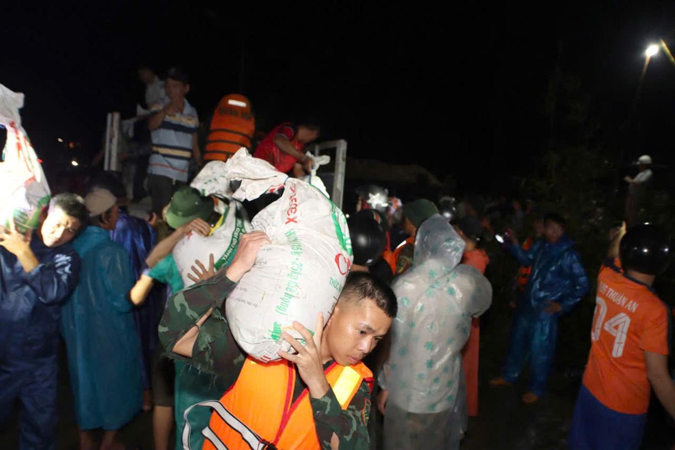 Để giữ vững tuyến kè, cán bộ, chiến sĩ và bà con Nhân dân đã phải thức "trắng đêm" vận chuyển hàng nghìn bao cát, đá để gia cố các điểm sạt lở. Do mưa lớn làm nền đường yếu, các phương tiện máy móc gần như không thể tiếp cận được hiện trường, khiến công tác “vá kè” phụ thuộc lớn vào sức lực của bộ đội.