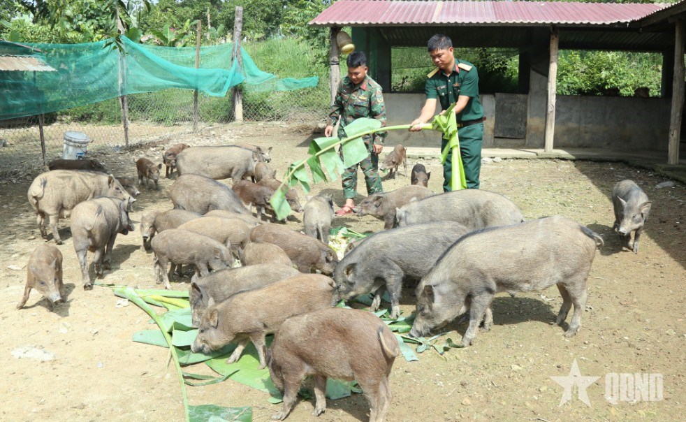 | Đàn heo lai rừng mang lại nguồn thu hàng chục triệu đồng mỗi năm cho Đại đội 1. |