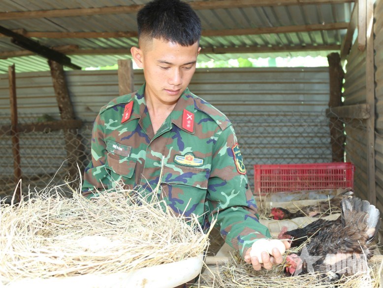 | Bộ đội thu hoạch trứng gà. |
