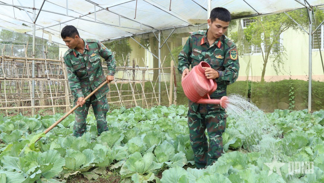 Với gần 1,2ha diện tích rau xanh, đàn heo lai rừng hơn 60 con, đàn bò gần 30 con và hàng trăm con gà, vịt, cán bộ, chiến sĩ đơn vị thường xuyên được thưởng thức những món ngon chế biến từ thực phẩm sạch, “cây nhà lá vườn”.