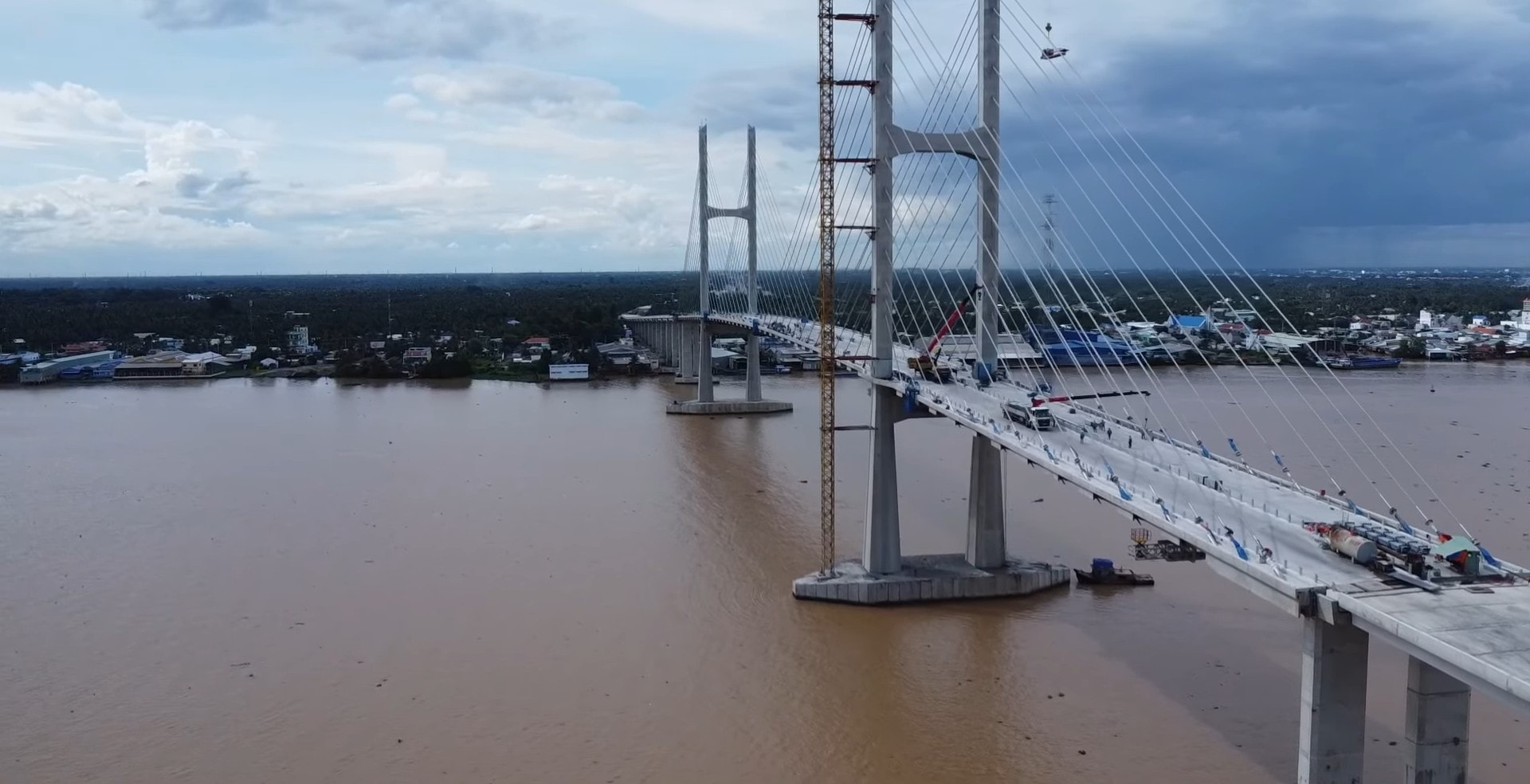 Các hạng mục xây dựng cầu Rạch Miễu 2 đang bước vào giai đoạn hoàn thiện. Ảnh: Trung Chánh TV.