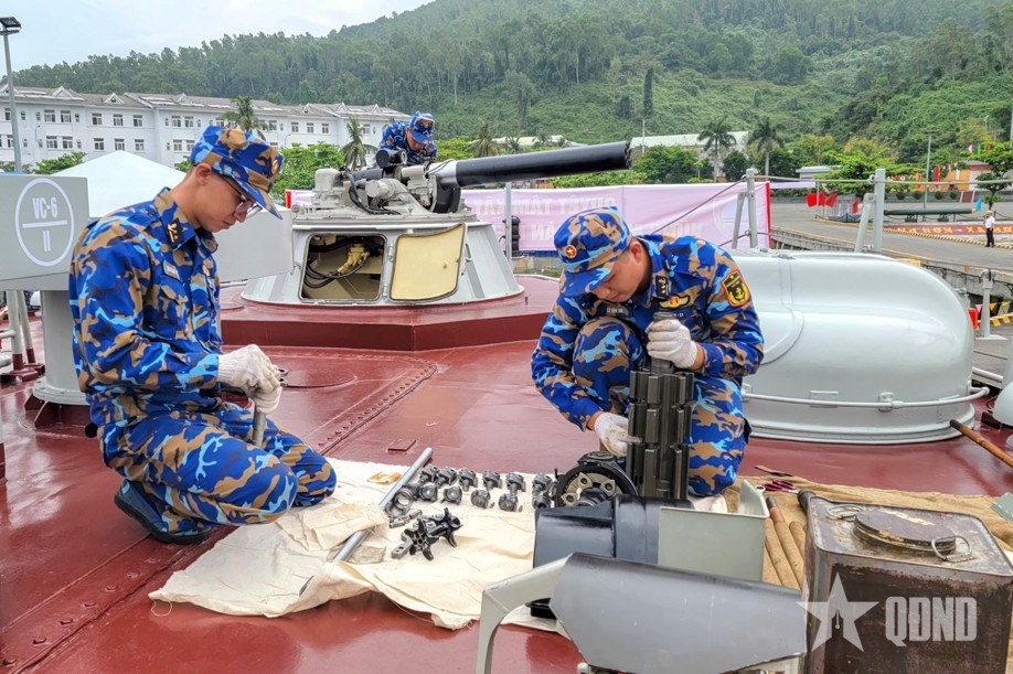 | Bộ đội Lữ đoàn 172, Vùng 3 Hải quân bảo quản vũ khí, trang bị. Ảnh: TRIỆU DIỆU |