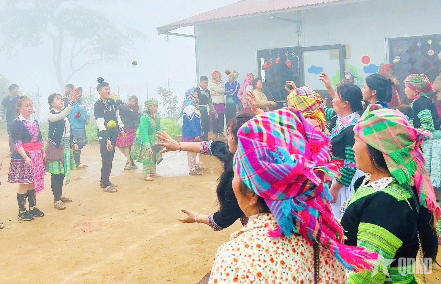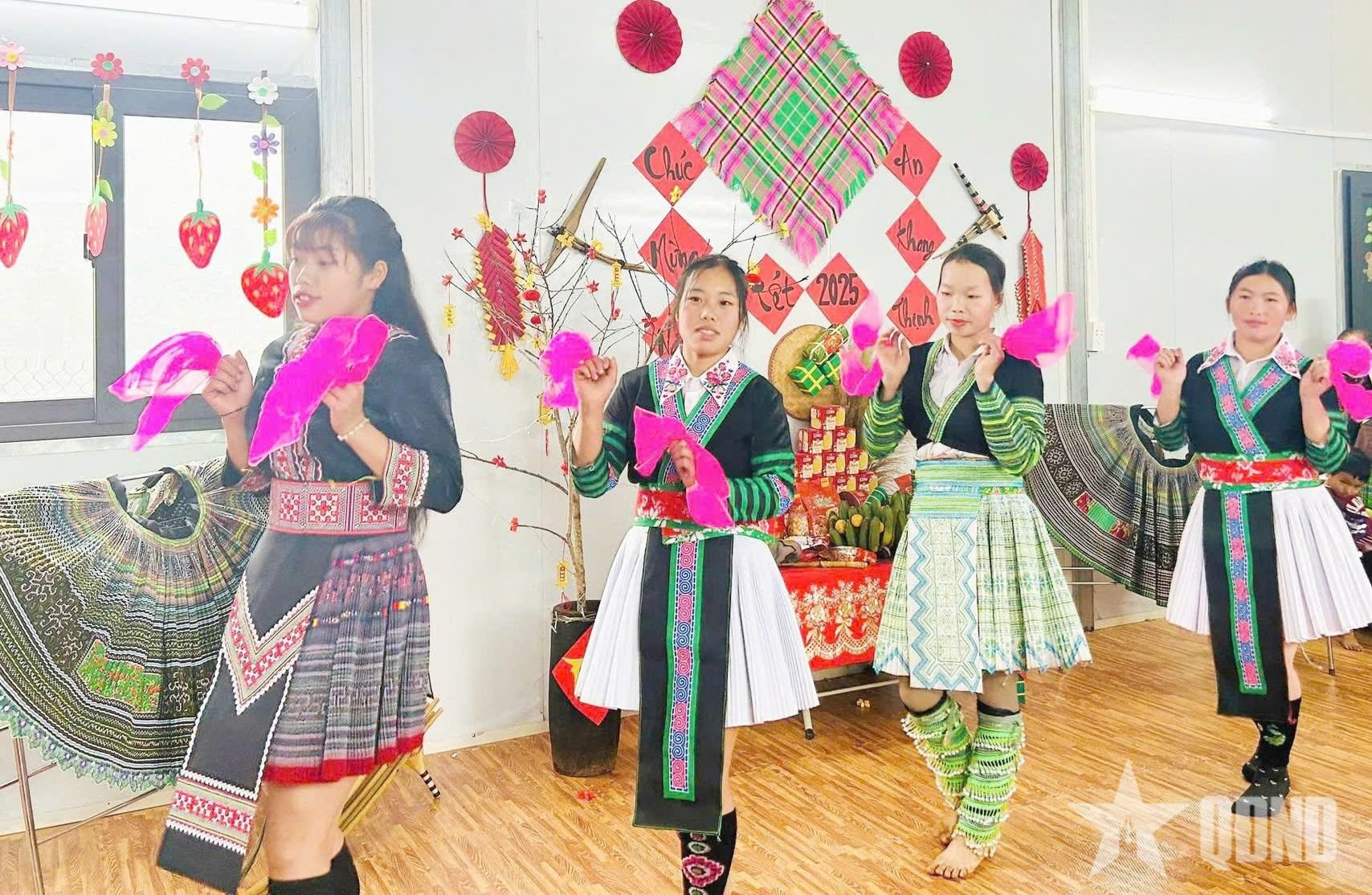 | Phụ nữ người dân tộc Mông Làng Mảnh tham gia giao lưu văn nghệ trong dịp Tết Nguyên đán Ất Tỵ 2025. |
