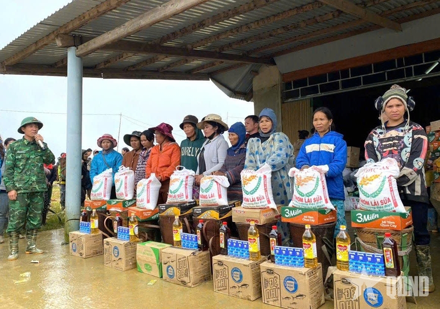 Đồn Biên phòng Ga Ry trao quà tặng nhân dân bị ảnh hưởng bởi mưa lũ. |