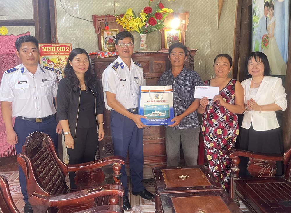 Lãnh đạo Vùng Cảnh sát biển 3 trao quà tặng ngư dân có hoàn cảnh khó khăn trên địa bàn thị xã Duyên Hải (Trà Vinh). |